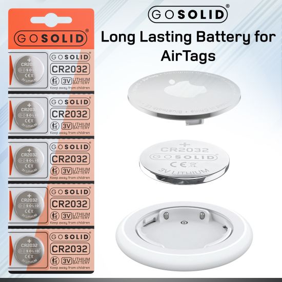 Ben je op zoek naar de juiste batterij voor je Apple AirTag? Dan zit je met dit 5-pack CR2032 batterijen van GO SOLID! helemaal goed. Deze hoogwaardige lithium-knoopcelbatterijen zijn precies wat je nodig hebt om je AirTag weer van stroom te voorzien.