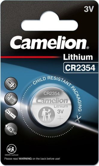 De Camelion CR2354 heeft een diameter van 23 mm mm en een hoogte van 5.4 mm mm. Dankzij een capaciteit van 560 mAh mAh gaat de Camelion CR2354 bovendien lange tijd mee.